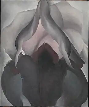 Black Iris, formerly called Black Iris III,[1][2] is a 1926 oil painting by Georgia O'Keeffe.[3] Art historian Linda Nochlin interpreted Black Iris as a morphological metaphor for female genitalia.[4][5] O'Keeffe rejected such interpretations in a 1939 text accompanying an exhibition of her work, in which she wrote: "Well—I made you take time to look at what I saw and when you took time to really notice my flower you hung all your own associations with flowers on my flower and you write about my flower as if I think and see what you think and see of the flower—and I don't."[6] She attempted to do away with sexualized readings of her work by adding a lot of detail.[7]