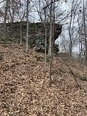 Black Rock is located along Warren County Road 350 North. The site occupies a prominent outcropping of Mansfield sandstone that overlooks the Wabash River.
