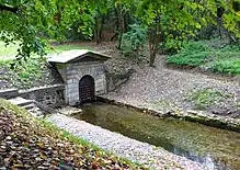 The tourist route was opened in 1957.[1] Due to terrain profile, the route is located 20 to 30 m underground, and is 600 m long.[1] Access is by two shafts with staircases: 30-metre deep "Sylwester" (Sylvester) built in 1828 and 20-metre deep "Ewa" (Eve) built in 1826.[1] Its current name Black Trout Adit came from trouts, that used to penetrate the adit from a river, seeming black in dim lights.[1] Width of the adit varies from 1.2 m to 2.5 m, height to 4 m, water depth from 0.7 m to 1 m.[1] The tourists travel in boat trains, pushed forward by guides.