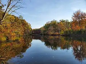 The Blackstone River has been significantly impacted by industrial activities and resulting pollution since the 18th century. Early industries discharged a variety of pollutants into the river, including dyes from textile mills and heavy metals and solvents from metal and woodworking industries.[8] Much of this early pollution lies trapped in sediments behind historic dams on the river and continues to affect the ecosystem today.