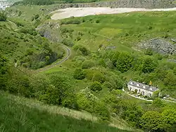 The branch carried on into Buxton along Wye Dale, crossing the main A6 road and the river by a high twin-arched girder bridge, before entering Pig Tor Tunnel (191 yards), where it emerged into Ashwood Dale, followed by the 100-yard (91 m) Ashwood Dale Tunnel.[3]