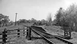 The branch was incorporated into the Great Western Railway during the Grouping of 1923, passing on to the Western Region of British Railways on nationalisation in 1948. Passenger services were discontinued in 1951, general freight in 1963 and milk traffic in 1973.[3] The single platform does not survive, like most of the others it was built from wooden railway sleepers.