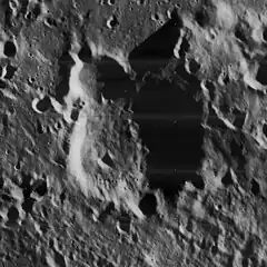 This crater lies within the Mendel-Rydberg Basin, a 630 km wide impact basin of Nectarian age.