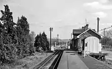A single siding equipped with a 2-ton yard crane handled goods traffic which consisted of watercress and English elm boles for trawling nets made locally in Longwick.[7] Figures from 1933 show that 2,853 long tons (2,899 t) of goods were sent from the station, whilst 402 long tons (408 t) tons of goods were received. In the same period 5,338 passenger tickets were issued and 6,529 parcels forwarded.[9]