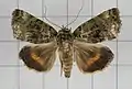 Its forewings have green and grayish variegations. The hindwings are dark blackish brown. There is a sinuous dark yellowish medial band in the hindwings. Its larval food plants are from the genus Shorea.[4]