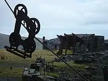 A photograph of a Blondin at Pen yr Orsedd quarry.