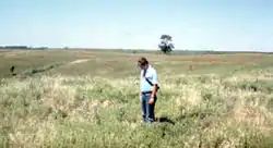 The site is located in the watershed of the James River. It contains the remains of a prehistoric fortified site, which was last inhabited about 1000 CE. Archaeologists have assigned it to the Lower James phase or Initial Middle Missouri phase of the Middle Missouri tradition.[4] The site is one of four sites that form part of this phase that exhibit fairly intensive usage patterns, and differ in their ceramics from surrounding sites.[5] The region was largely abandoned about 1300, in part due to the relatively poor quality of the land, which contributed to a sparse settlement pattern at the time.[4] Finds at the site include the remains of blue-winged teal.[6]