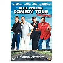 Blue Collar Comedy Tour: The Movie is a 2003 American stand-up comedy concert film from Warner Bros. Pictures. It stars comedians Jeff Foxworthy and Bill Engvall and fellow Blue Collar comics Ron White and Larry the Cable Guy. The movie is similar in nature to that of The Original Kings of Comedy. It was followed by two direct-to-video sequels, Blue Collar Comedy Tour Rides Again (2004) and Blue Collar Comedy Tour: One for the Road (2006).[1] The film received critical acclaim.