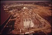 The original Blue Plains facility opened in 1937 as a primary treatment facility.[1] It discharged under 100 mgd, serving a population of 650,000. Population increases in the 1950s led to the construction of secondary treatment units in 1959, with an expanded discharge capacity of 240 mgd. In the 1970s a major expansion commenced that led to construction of advanced wastewater treatment components, and by 1983 the capacity was 300 mgd.[8]