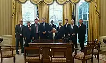 Hugin and other pharmaceutical executives with President Donald Trump in January 2017