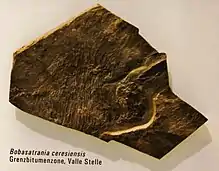 - 1 2 3 Böttcher, Ronald (2014). "Phyllodont tooth plates of Bobasatrania scutata (Gervais, 1852) (Actinoperygii, Bobasatraniiformes) from the Middle Triassic (Longobardian) Grenzbonebed of southern Germany and eastern France, with an overview of Triassic and Palaeozoic phyllodont tooth plates". Neues Jahrbuch für Geologie und Paläontologie, Abhandlungen. 274 (2–3): 291–311. doi:10.1127/njgpa/2014/0454.