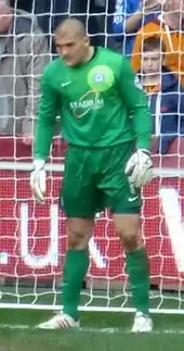 However, on 30 May 2007, Olejnik was released by Villa manager Martin O'Neill and the following day joined Scottish club Falkirk.[7] At the start of the season, Olejnik became second choice to Tim Krul who made 22 appearances. Olejnik made his debut for the club in a 1–0 win over Kilmarnock on 2 January 2008, coming on a substitute for Russell Latapy after Krul got sent off for unsportsmanlike conduct. Krul would later return to his parent club after suffering a shoulder injury[8] and Olejnik would later become a first choice goalkeeper for the rest of the season. Olejnik managed to keep his first clean sheet for the club in a 0–0 draw against Aberdeen on 5 January 2008.