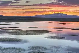 The Bodie Hills is a low mountain range in Mono County, California, in the United States.[2] The highest peak is Potato Peak at an altitude of 10,220 ft (3,115 m).[1] The Bodie Hills are between Bridgeport and the Nevada border, where they become the Bodie Mountains in Mineral County, Nevada. The Sierra Nevada lies to the west. The mining district and town of Bodie, California, is located in the Bodie Hills.