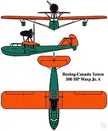The Boeing-Canada A-213 Totem was a Canadian single-engine pusher monoplane flying boat intended for forestry and fisheries patrols as well as a light utility transport for the British Columbia coastline, where there are few flat places for runways, and waterways are plentiful. The sole example, CF-ARF, CB10[2] was designed and built by Boeing Aircraft of Canada. The name refers to the Totem poles used by the First Nations in British Columbia.[3]