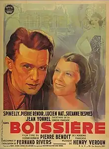 Boissière is a 1937 French war drama film directed by Fernand Rivers and starring Andrée Spinelly, Pierre Renoir and Suzanne Desprès.[1][2] It is an adaptation of the 1935 novel of the same title by Pierre Benoit.[3] The film's sets were designed by the art director Robert Gys.