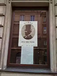 "2012: Year of Prus": poster commemorating 100th anniversary of Prus's death, in a window of the Polish Academy of Sciences, Krakowskie Przedmieście, Warsaw, 2012