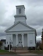 Bolton Green Historic District is a historic district that includes the town green, Bolton Green, of the town of Bolton, Connecticut. The green and the surrounding buildings were listed on the National Register of Historic Places in 2001.[1] The district encompasses 9 buildings, 1 site, 4 structures, and 2 objects that contribute to the historical significance of the area.[2] The district extends east about 500 yards (460 m) from the green along Bolton Center Road. The oldest existing buildings around the Green are the former tavern and the Bolton General Store. The most prominent building around the Green is the Bolton Congregational Church, a Greek Revival structure built in 1818 with a truncated box-spire. Other structures around the green are a house facing the green on the east side built in the 1840s, and a new ranch house that was built on the former site of an 1870s house that was destroyed by fire.[3] Other properties in the district includes the Brick Tavern, the site of Bolton's first post office, the town hall, the Tuthill residence, and the Bolton Heritage Farm.