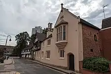 It is a timber framed building with brick infilling, and a tiled roof with bargeboards.[2] It consists of twelve bed-sitting rooms and a common room, and the garden at its rear contains a portion of the old city wall.[6][9]