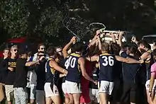 Bond would again reach the Grand Final in 2012 but lightning would strike twice as the Bull Sharks fell to Tweed Coast by 44 points. After a disappointing 2013 season in which the club was eliminated in the first round of the finals, the Bull Sharks moved their home games to the newly created Australian rules football field at the university campus.[2] Affectionately known as the "Canal", the new grounds would prove a successful move for Bond as the club claimed a second minor premiership in 2014. The club went on to win the 2014 QAFA (B) South premiership, defeating Tweed Coast to claim the first premiership in the club's short history.[3]