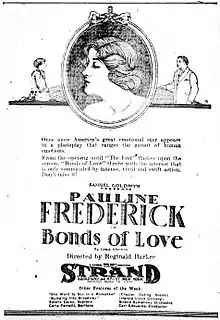 Bonds of Love is a 1919 American silent romantic drama film directed by Reginald Barker and starring Pauline Frederick.[1] It is based on the 1906 Arthur Wing Pinero play His House in Order. Distributed by Goldwyn Pictures, the film is now considered lost.[2]