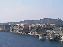 Bonifacio is located directly on the Mediterranean Sea, separated from Sardinia by the Strait of Bonifacio. It is a city placed on the best and only major harbour of the southern coast and also is a commune covering a somewhat larger region including the offshore Isles Lavezzi, giving it the distinction of being the southernmost commune in Metropolitan France. It lies closer to the capital cities of 20 other countries in Europe and Africa than its own, Paris. The commune is bordered on the northwest by the canton of Figari and has a short border on the northeast with the canton of Porto-Vecchio. The combined border runs approximately from the Golfe de Ventilegne on the west to the mouth of the Golfu di Sant'Amanza on the east. The coastline circumscribed by the two points is about 75 kilometres (47 mi). Highway N198 runs north along the east coast and N196 along the west.[4]