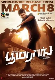 Boomerang is a 2019 Indian Tamil-language action thriller film written, produced, and directed by R. Kannan. The film stars Atharvaa in a dual role, alongside Megha Akash, and Indhuja, while Upen Patel plays an antagonistic role[1] alongside Sathish and RJ Balaji in supporting roles. The music was composed by Radhan with cinematography by Prasanna Kumar and editing by R. K. Selva. The film released on 8 March 2019.