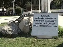 Having served valiantly at Çanakkale and in the war of independence he is considered a hero by the people and is offered worldly goods such as houses, plantations, gardens and olive tree fields, however refuses them all. He did not do it for the reward, he sacrificed his life unconditionally for the love of his country and his people. He died in 1972 in Burhaniye. Around this time the well known Turkish sculptor Gürdal Duyar created a sculpture depicting İsmail Çavuş for Burhaniye. Around 1992 this sculpture was removed by the mayor at the time. Another monument in honor of Borazan İsmail can be found in front of the Atatürk statue in Burhaniye. The monument features a bugle and a revolver sitting on a stone base next to a marble slab with black text on the front face explaining the meaning of the monument. He is remembered and honored as a hero for his service and heroic deeds in saving Burhaniye.