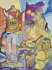 "Still life with samovar and bread", watercolour painted by Boris Smirnoff