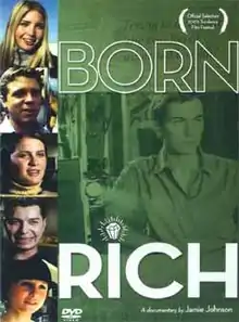 Born Rich is a 2003 documentary film about the experience of growing up in wealthy families. It was created by Jamie Johnson, an heir to the Johnson & Johnson fortune, and filmed primarily between 1999 and 2001. The film consists primarily of Johnson interviewing 10 other young heirs. These interviews are offset by Johnson's exploration of his own experience and family as he comes into a large inheritance on his 21st birthday. He seeks out how to be a productive person, avoiding the dysfunction that he sees affecting many of the very rich.[3][4] The film explores the taboo the ultra rich have against talking about their wealth. Johnson believes this secrecy about wealth causes the wealthy to be dysfunctional,[4][5] and exists because the discussion of their wealth challenges the notion that America is a meritocracy and their right to have their wealth.[6][7][8]
