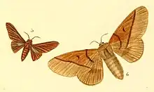 Borocera madagascariensis is a species of lasiocampid moth endemic to coastal Madagascar. It is one of three species of silk producing moths found on the island of Madagascar.[2] B. madagascariensis is often confused with the similar Borocera cajani, which is distributed throughout the island and whose silk is more widely used for silk production. Many publications erroneously refer to B. cajani as B. madagascariensis.[3] It shares the common name of landibe with B. cajani.[4] The pupae of B. madagascariensis is consumed by the people of Madagascar, and is known in Malagasy as soherina.