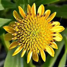 Borrichia frutescens is a North American species of flowering plants in the family Asteraceae known by the common names sea oxeye, sea oxeye daisy, bushy seaside tansy, and sea-marigold. In Veracruz it is called verdolaga de mar.[2] It is native to the United States and Mexico, where it occurs along the Atlantic and Gulf Coasts. Its distribution extends from Maryland south to Florida and west to Texas in the US,[3] and along the Mexican Gulf Coast to the Yucatán Peninsula.[4] It is an introduced species in some areas, such as Bermuda[5] and Spain.[6][7][8]