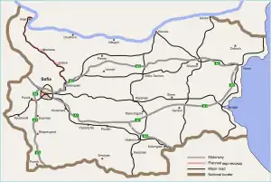 The Vidin-Botevgrad expressway (Bulgarian: Скоростен път „Видин-Ботевград“, romanized: Skorosten pat "Vidin-Botevgrad") is a planned expressway in Bulgaria, that will link the A2 Hemus motorway with Vidin and the New Europe Bridge, at the Danube border crossing to Romania. The expressway shall provide grade-separated dual carriageway with two lanes in each direction and it shall replace or supersede the existing I-1 road.