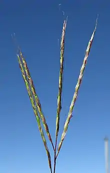 Bothriochloa macra, commonly known as red-leg grass,[2] red grass,[2] redleg[3] or pitted beard grass[3] is a perennial grass species that is native to eastern Australia and New Zealand.[3] It is naturalised in Tasmania and Norfolk Island.[4]