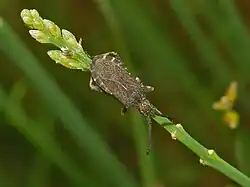 These herbivore insects are trophically associated with leguminous plants. They mainly feed on Bromus species.[5] Adult males have the unusual behaviour of feeding on excrements.[6]