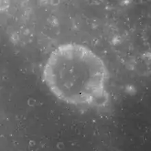 Bowen is a small lunar impact crater that is located to the southwest of the Montes Haemus, on the edge of a small lunar mare named the Lacus Doloris. It was named after American astronomer Ira S. Bowen.[1] It is distinguished only by having a relatively flat floor, rather than being bowl-shaped like most small craters. Bowen was previously designated Manilius A. The crater Manilius is located to the south, at the opposite shore of the Lacus.