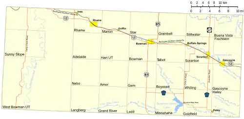 - 1 2 3 Bowman County ND Google Maps (accessed February 15, 2019)