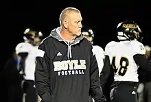 The 2017 championship was their first since 2010; they won 40–21 over Corbin.[14][13] They were state runner-up in 2004 with a 13–2 record and then lost 22–6 to Highlands.[16] From 2014 to 2019, their head coach was Chuck Smith. He was rehired after being Boyle County's head coach from 1992 to 2004.[17] The team was also coached by Larry French; he started in 2008 and left for Southwestern High School in 2013.[18] ShaDon Brown, recently hired as safeties coach for the Louisville Cardinals, served as an assistant coach for the team's 2007 season.[19][20] In 2020, Justin Haddix was named the thirteenth head coach in program history. He has lead the Rebels to four consecutive class AAAA state titles and has amassed a 53–3 record since being hired.