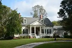 The Bozeman House is a historic house in rural Clark County, Arkansas. It is located on the north side of Arkansas Highway 26, several miles west of Arkadelphia, the county seat. It is a 1+1⁄2-story wood-frame house with Greek Revival styling. The house was built c. 1847 by Michael Bozeman, one of the county's early settlers, and is one of the oldest structures standing in the county. The main block is five bays wide, with a pedimented portico above the entrance on the southern facade. A kitchen ell extends to the rear of the house from the northwestern corner, giving the house an L-shape. The roof the main facade is pierced by a pair of gabled dormers. The trim detailing includes entablatures and dentil moulding.[2]
