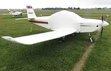 The Cherry seats two, in side-by-side configuration under a large, almost fully transparent, forward sliding canopy. It has a retractable tricycle undercarriage, with simple, outward folding main gear.[2] A non-retractable undercarriage is an option.[1] The prototype was powered by a 65 hp (49 kW) Continental A65 flat four engine; since then, Cherrys have used flat fours with power of up to 100 hp (75 kW), including some from the Continental range, the Volkswagen-derived Limbach L.2400 and the Rotax 912.[2][3] Also the flat 2-cylinder motorcycle derived BMW R1200GS has been used.[4]