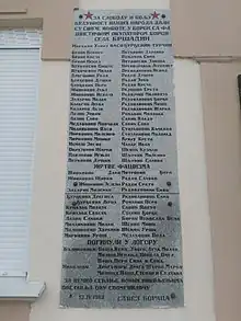 Serbian Cyrillic inscription on 1962 World War II memorial in the centre of the village.