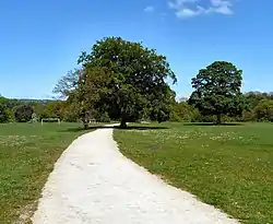 Brabyns Park was formerly the grounds of Brabyns Hall, a now demolished mansion house.[1] The estate was originally owned by the Lowe family of Lower Marple. Elizabeth Brabin owned the estate in 1749 and, with her husband Henry, built the Georgian Brabyns Hall and began the landscaping of the grounds. The house faced down the valley to take advantage of the views and lodges controlled access into the park. In 1800, the estate was purchased by Nathaniel Wright and, in 1811, the house was extended with lake added and chestnuts, poplars and cypress trees planted. Ann Hudson inherited the estate in 1866 and it continued in the female line until Fanny Hudson died in 1941. The estate was bought by Cheshire County Council and was opened for public recreation. The hall was demolished in 1953 and, subsequently, the farm house in the 1970s.[1][2]