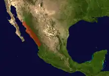 This species is found in the foothills of the Sierra Madre Occidental in Sinaloa and Nayarit in Mexico.[7]