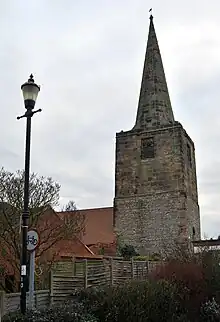 Because of the village's position on high ground there were at one time two windmills serving the village. The last one was a post mill at the top of Far Street (grid reference SK581311), built before 1832,[3] derelict in the 1870s and burnt down on 5 November 1880.[4] It had an open trestle and a tailpole.[5]
