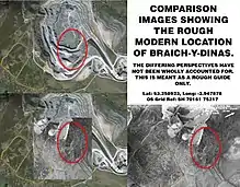 Nothing at all remains of the hillfort at Braich-y-Dinas.[6]