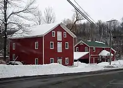 The mill building is a 30 foot by 50 foot, rectangular, gable roofed wood-frame building, two and one half stories on the end facing the road.[2]