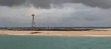 The 17-metre (56 ft) automatic lighthouse, located east of the centre of the cay, is the only human structure on the island. It is maintained by the Australian Maritime Safety Authority. The cement base of the old (1958) temporary lighthouse tower, once located near the centre of the cay, now sits towards the south-eastern side of the cay at the high tide mark.[14][11] It is the most northerly navigation aid in Australia, at latitude 9°08.5' S. It also marks the northern end of the Great Barrier Reef.[12]