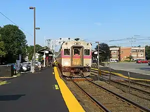 Brandeis/Roberts station is an MBTA Commuter Rail station in Waltham, Massachusetts. It serves the Fitchburg Line and is located on the edge of the campus of Brandeis University. The station is fully accessible, with mini-high platforms serving both tracks.[2]