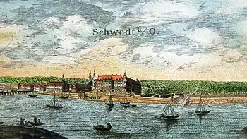 Brandenburg-Schwedt was a secundogeniture of the Hohenzollern margraves of Brandenburg, established by Prince Philip William who took his residence at Schwedt Castle in 1689. By appanage, they administered the manors of Schwedt and Vierraden on the Oder river (Uckermark and Neumark) as well as Wildenbruch in Pomerania (present-day Swobnica, Poland). Though prosperous, the cadet branch never obtained Imperial immediacy.