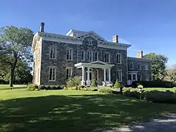 Brecknock Hall is a historic home located at Stirling in Suffolk County, New York.[2] It was built in 1857 and is a 2+12-story, square cut ashlar stone residence in the Italianate style. The central projecting gable has a one-room sized cupola centrally located on the roof. Also on the property is a 19th-century barn, a small early 20th-century greenhouse, and an early 20th-century caretaker's house.[3]
