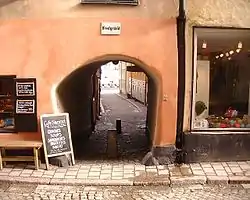 1. "Innerstaden: Gamla stan". Stockholms gatunamn (2nd ed.). Stockholm: Kommittén för Stockholmsforskning. 1992. p. 52. ISBN 91-7031-042-4.